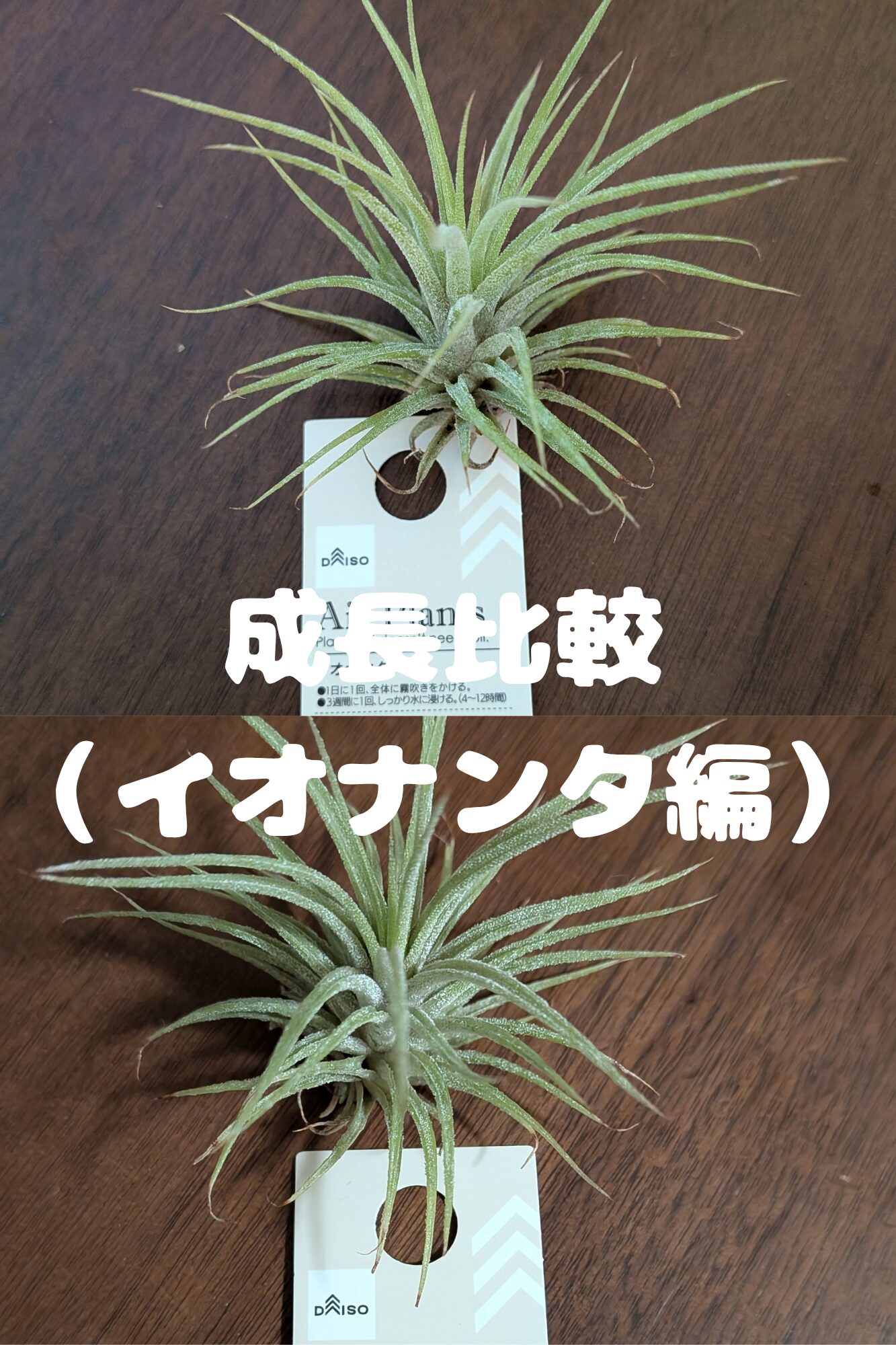 100均で購入したエアープランツ「イオナンタ」を、購入時の写真と比べてみました。