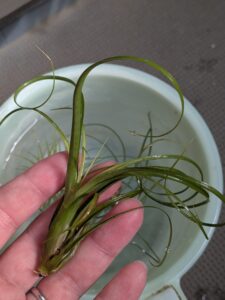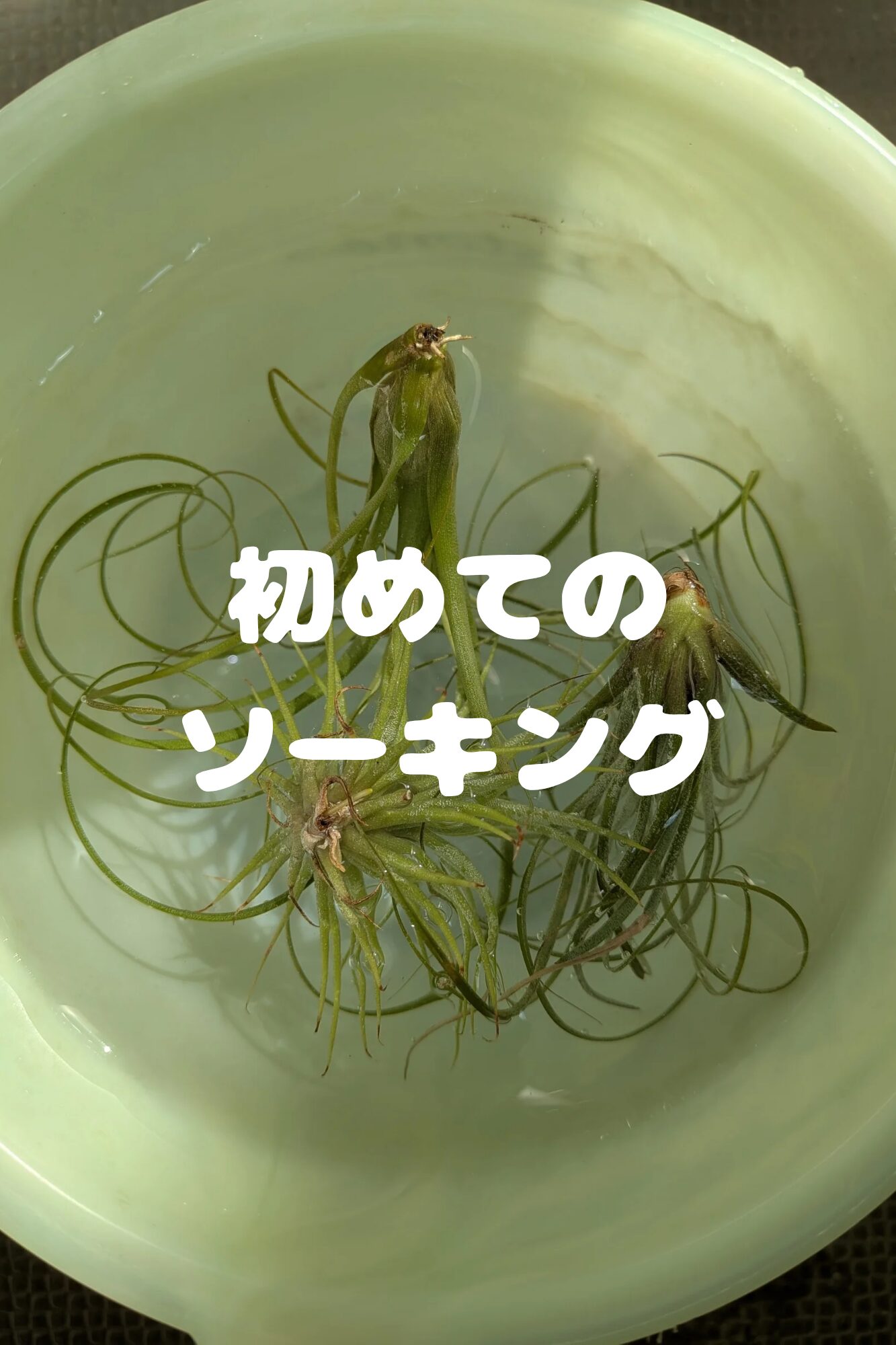 購入したエアープランツに、初めてソーキング(水に漬ける方法)を試しました。