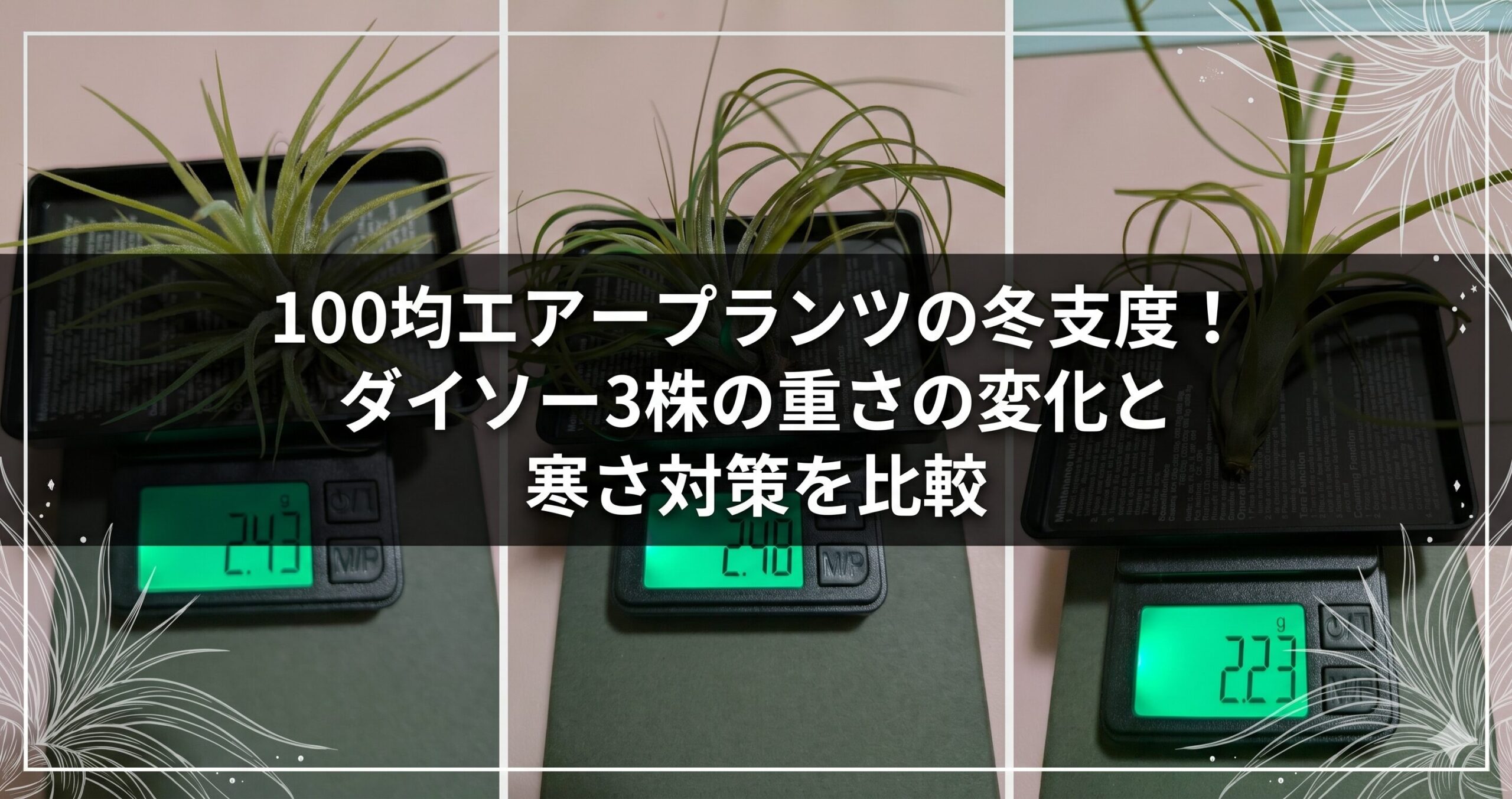 100均エアープランツの冬支度!ダイソー3株の重さの変化と寒さ対策を比較